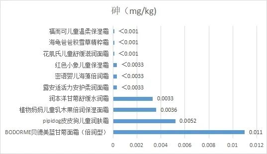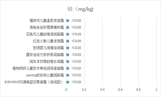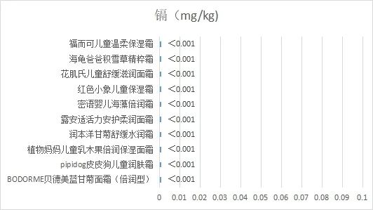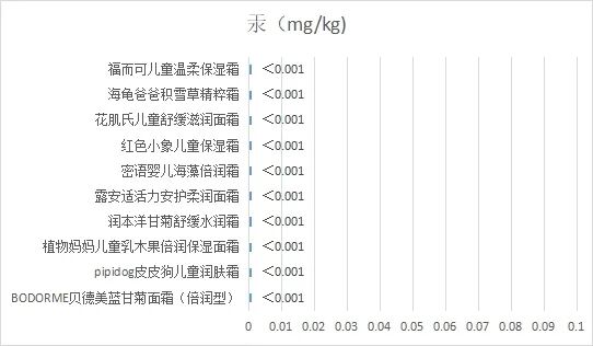 本次比较试验样品均为儿童面霜类产品,共10款,按照《化妆品安全技术规范》(2015年版)第四章1.6锂等37种元素,共检验了铅、砷、汞、镉4种元素,均符合国家标准要求。