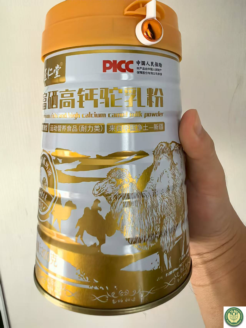 近日,记者从网上购买了一罐“匠仁堂富晒高钙骆驼乳粉”产品,产品在罐体正面以较大字体标注了“富硒高钙驼乳粉”,在其下方用较小字体标注有“运动营养食品(耐力类)”“来自中国净土——新疆”等字样。生产日期为2025年7月10日,标签营养成分表中显示蛋白质含量为2.5克/100克,低于《乳粉和调制乳粉》(GB19644—2024)对调制驼乳粉的要求。